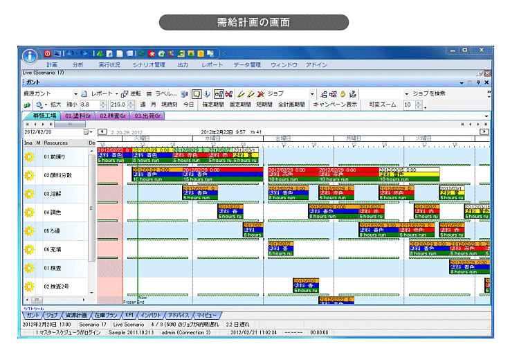 販売計画と制約条件を考慮して自動生成されたデータに意思を反映して生産計画を作成。