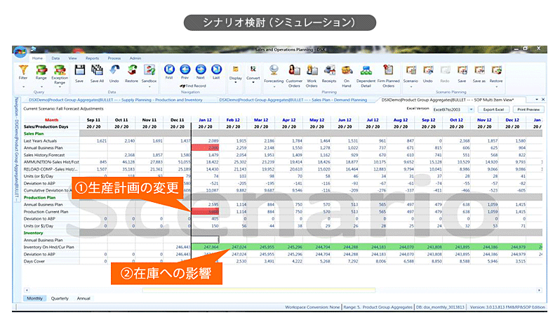 需給計画とそれに関連づいた収益計画に対して、事業戦略や財務計画に基づいて作成したシナリオでのシュミレーションを経て、どうすべきかの意思決定を行う。